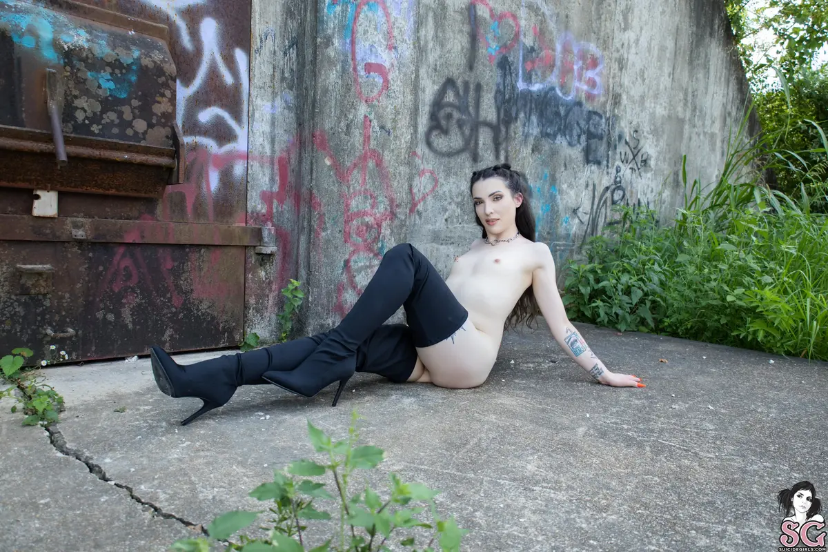 When the world’s gone quiet and the sky still smolders, she’s the last spark left standing. Hair flows low, Boots laced, and black lingerie daring against the chaos. She’s not hiding from the fallout, she’s owning it. Out here, safety looks a lot like temptation… shelter me, baby.blaisequartz