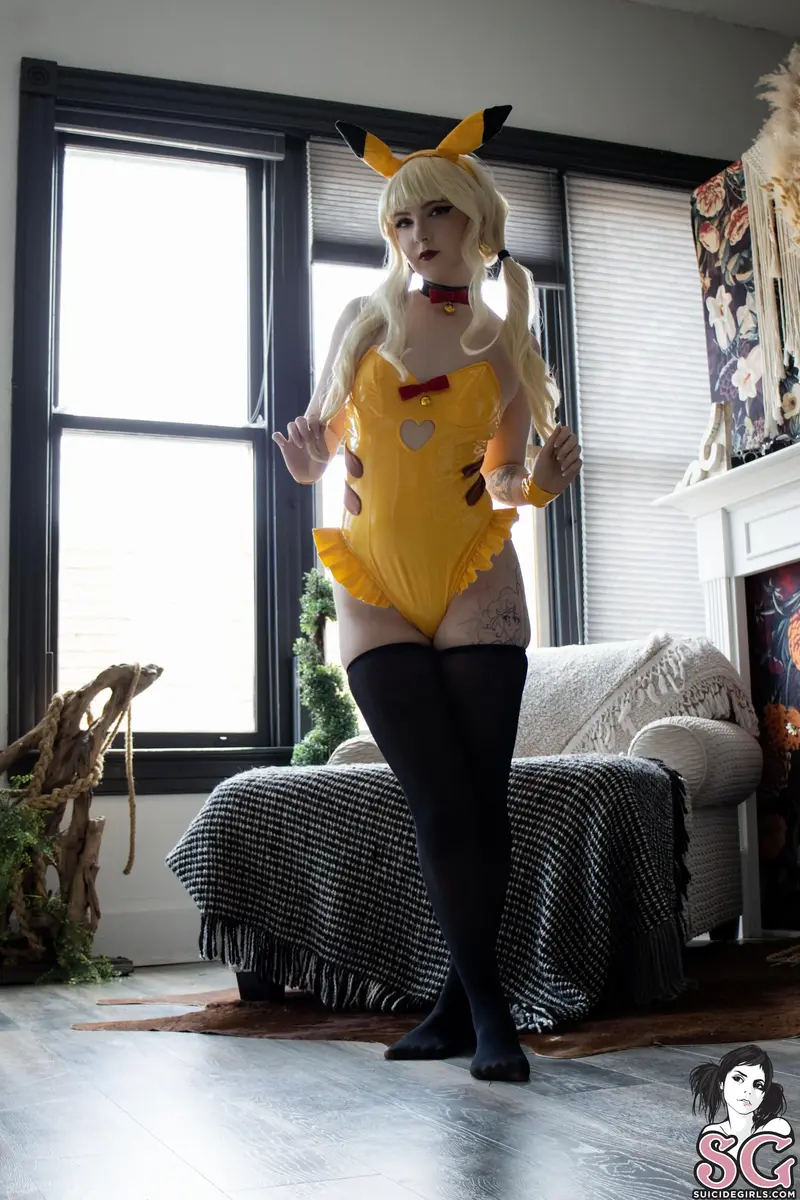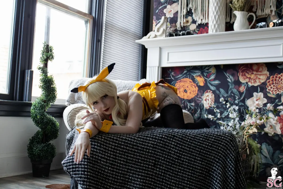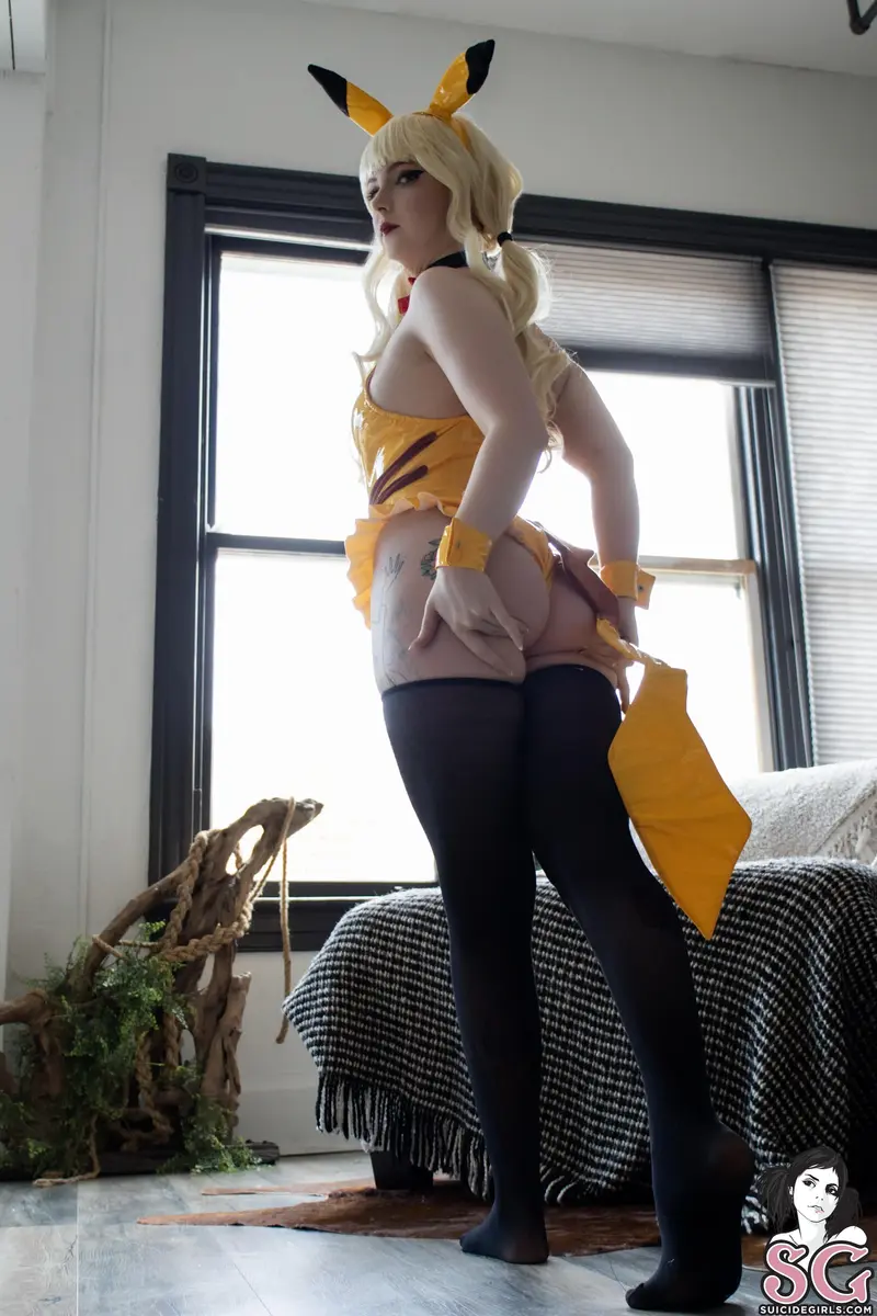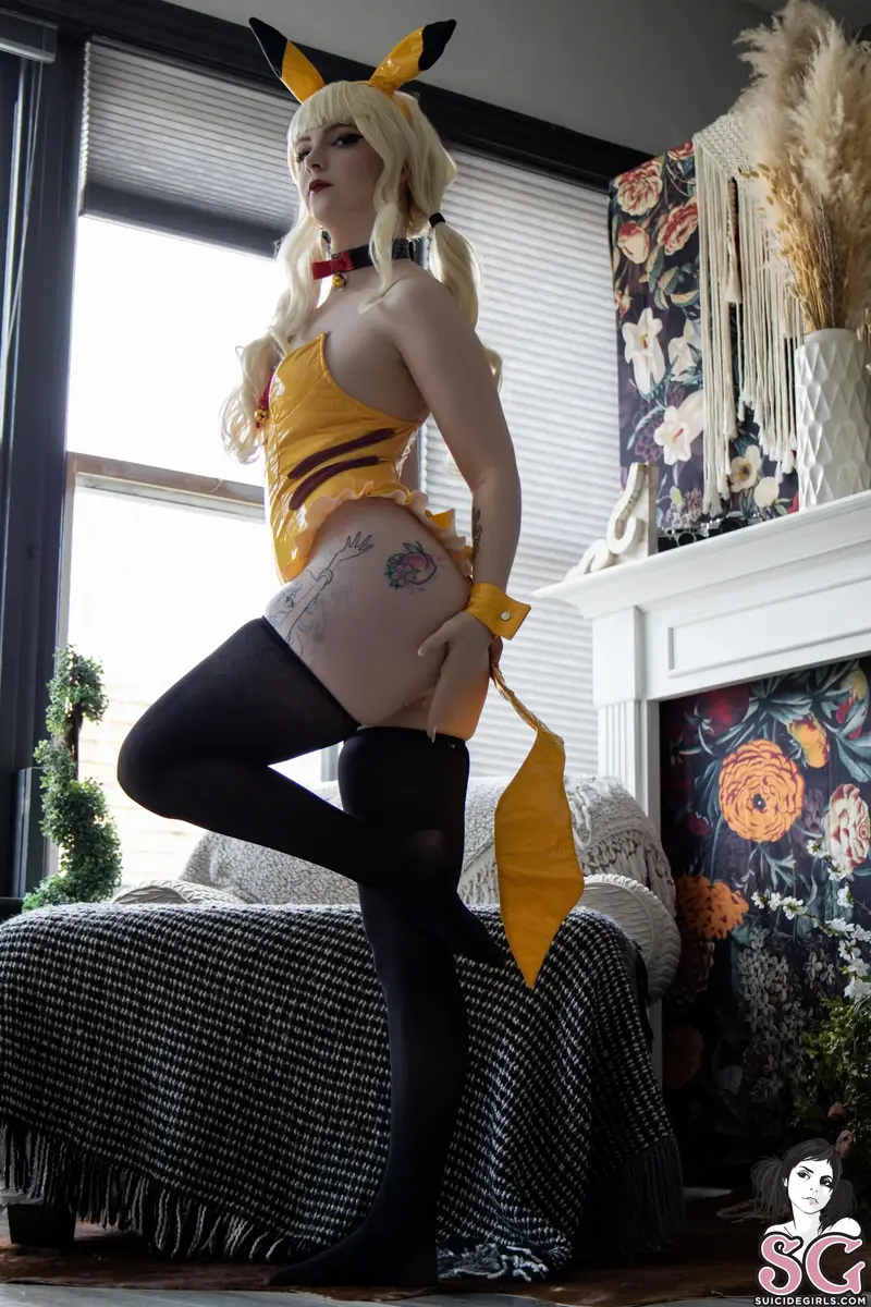 Pokémon inspired boudoir set in Mobbunny’s Pikachu inspired bunny suitdaisycakes