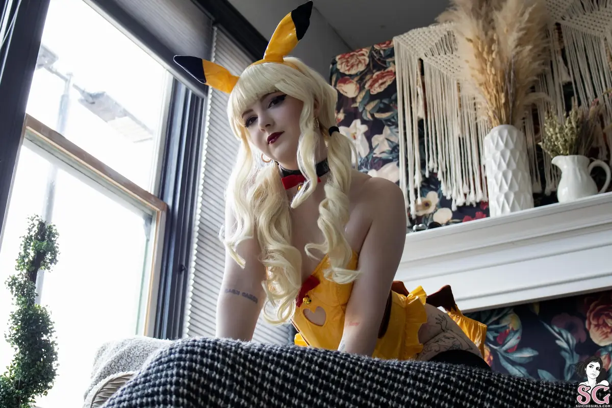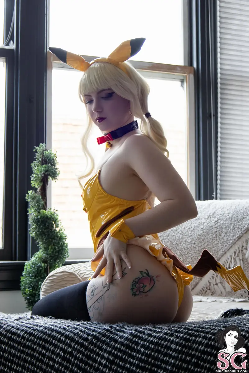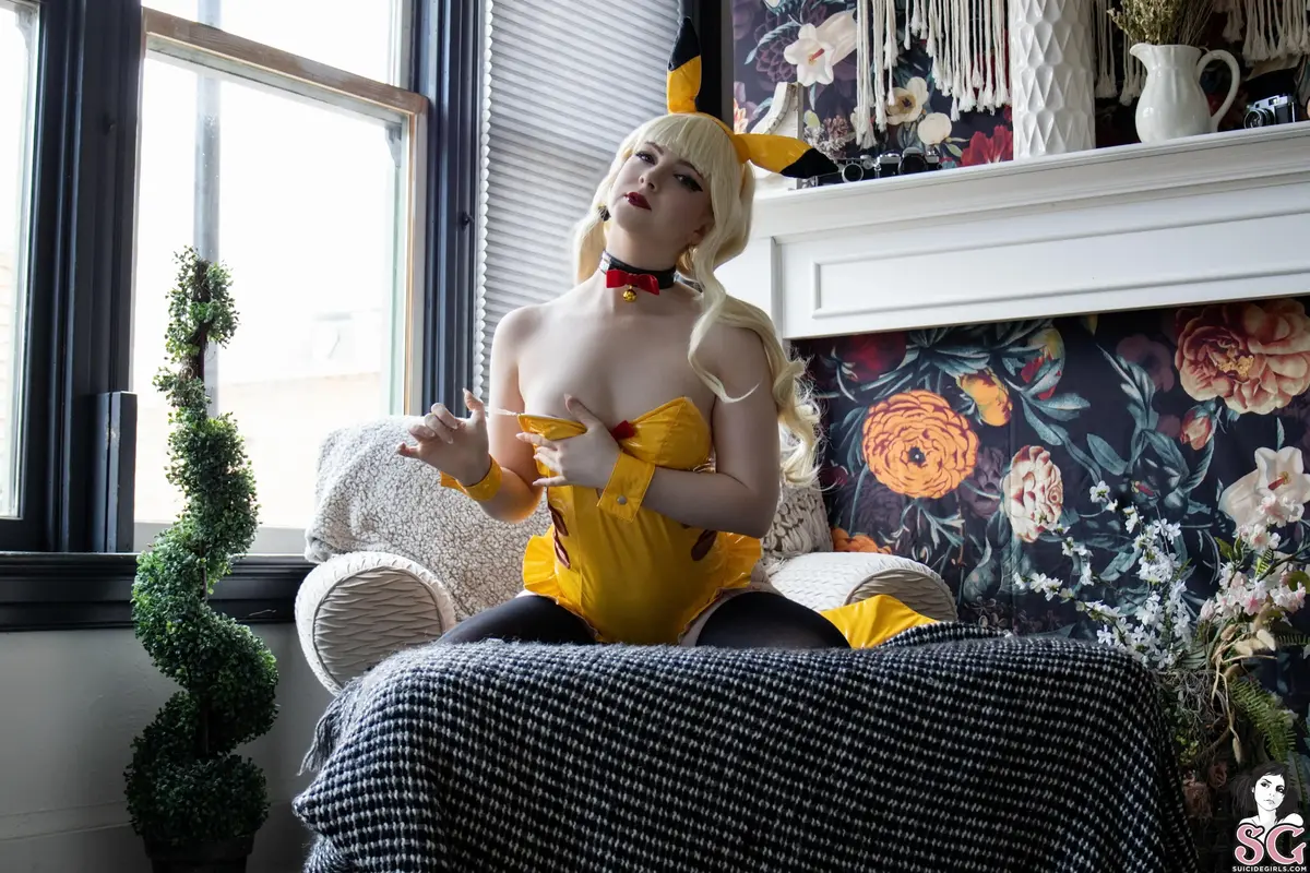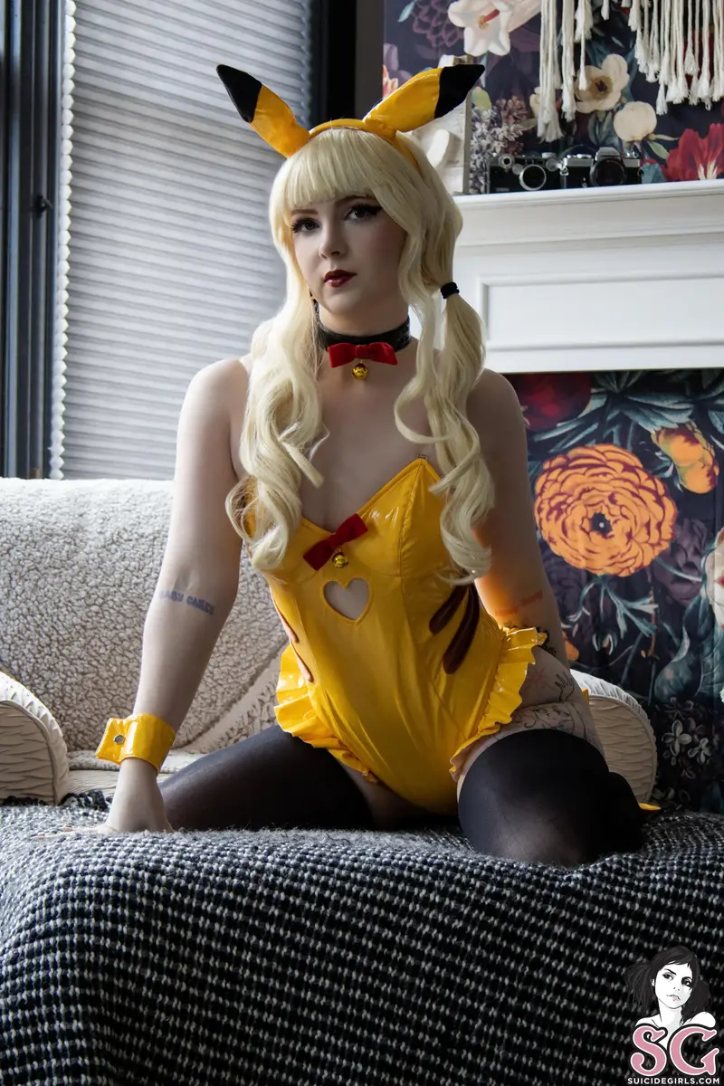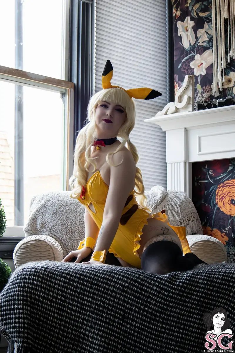 Pokémon inspired boudoir set in Mobbunny’s Pikachu inspired bunny suitdaisycakes