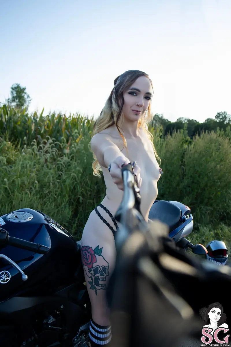 She didn’t just pose with the bike—she owned it, the sleek curves of the bike echoing her own. Every glance over her shoulder, every arch of her back was an invitation laced with danger. The sun dipped low, gilding her skin as if even daylight couldn’t resist lingering. She was the woman your mother warned you about—the kind that could make you forget your name with one look, and your limits with one touch. A siren on asphalt, she wasn’t there to be tamed—she was there to make you surrender.exoticsiren