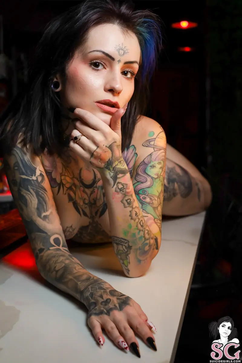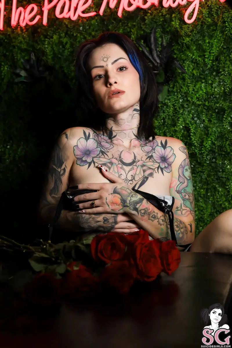 It started with me sitting alone at a table, a single red rose in hand, waiting for a date who never came. I wandered to the bar, letting the soft glow of the lights warm me, and before I knew it, I was perched on the counter, feeling the smooth wood beneath me. One by one, the roses multiplied, petals brushing my skin, until I was lost in the moment—completely bare, surrounded by crimson blooms, making my own kind of unforgettable night.lilmisss80