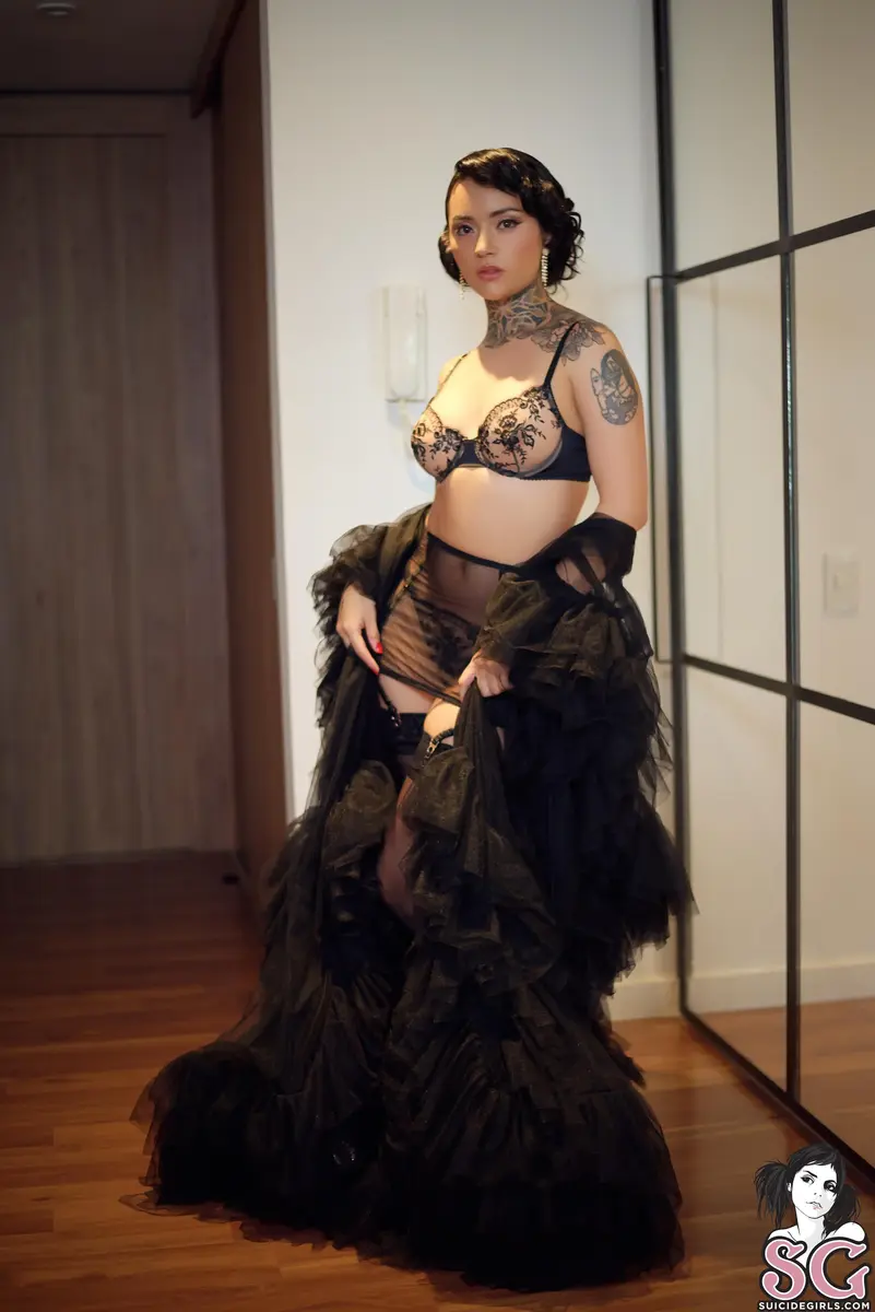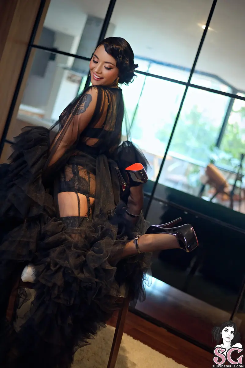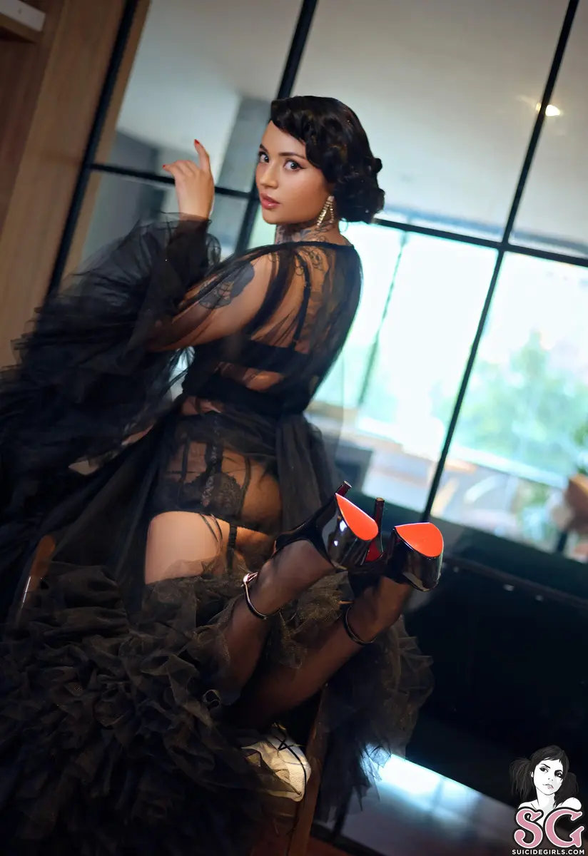 They say that the artistic nude is “an exploration of the body from an aesthetic perspective”. In this series, I explore this theme through black lingerie, sky-high heels and an expression that says, “I'd ruin your life, and you'd love it” until I'm completely naked. The series is inspired by femme fatales who leave emotional corpses in their wake and burlesque, not for the faint of heart. Classic Harmony aims to provoke cold sweats and perhaps seduce garter belt and cult fans. Like a scene straight out of film noir, each image is shrouded in mystery and guilty glances. Each photo is an elegant threat. I look at you as if I know your dirty secrets and plan to use them. It is the art of seduction without inhibitions. Remember, power doesn't always come well dressed. Sometimes it only wears garters.missdivadivina