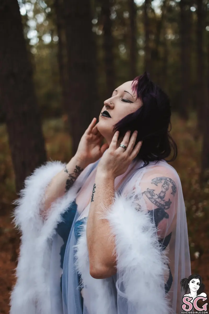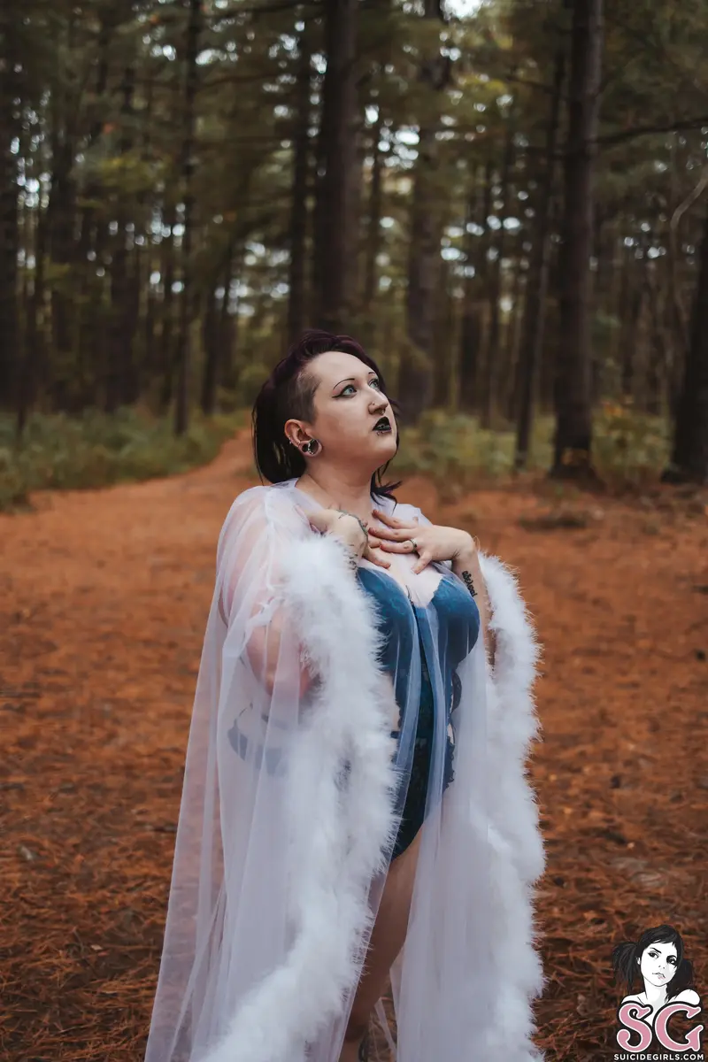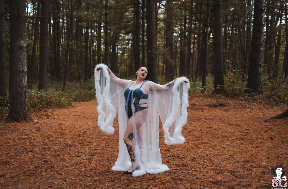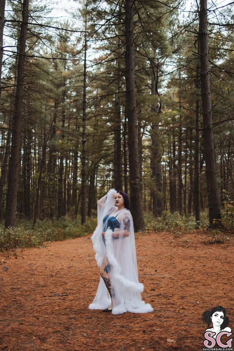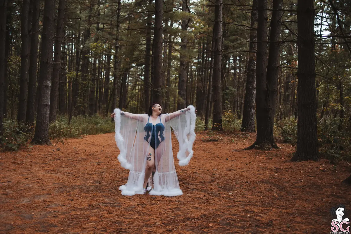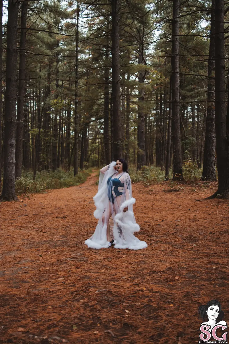 Among the whispering pines, I step into the forest like a vision from another realm. Wrapped in gossamer and light, I blur the line between dream and reality—an ethereal enchantress who drifts where the wild meets the divine. Every glance, every gesture, a spell woven beneath the trees.obsidynne