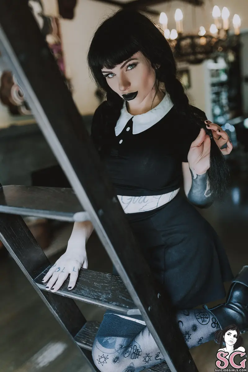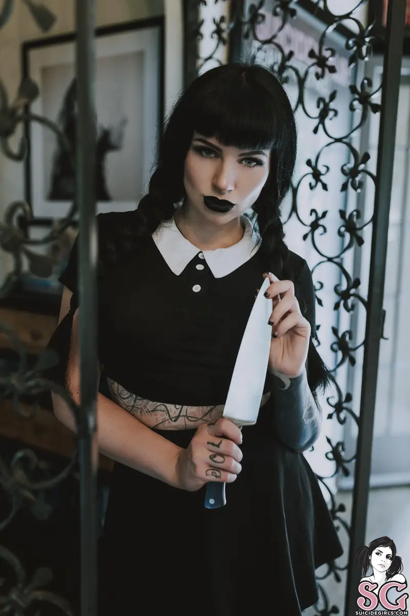 :skull::black heart: "This is my costume. I'm a homicidal maniac, they look just like everybody else." - Wednesday Addamspenny