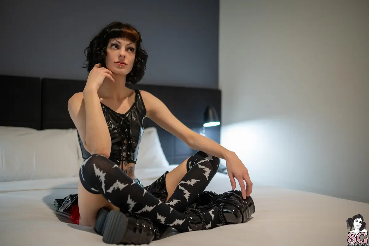 Join me in bed, while I strip down out of my batty PVC faux leather lingerie set!prettybones