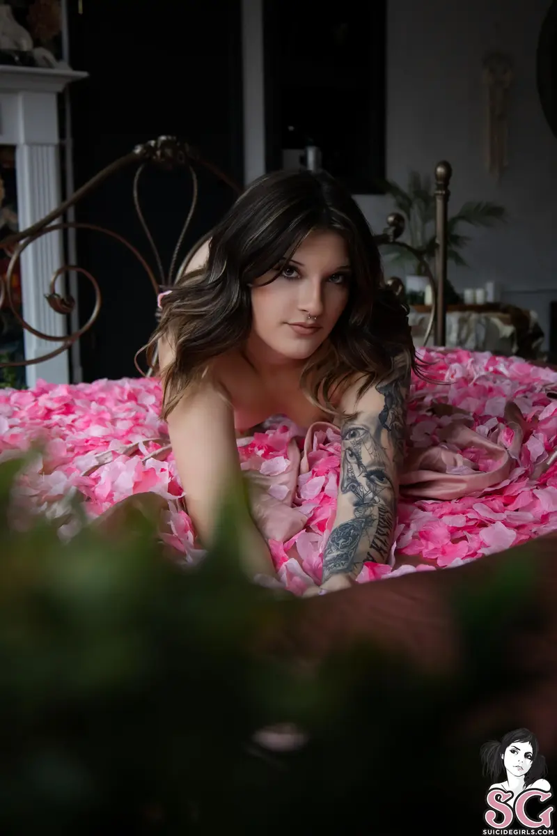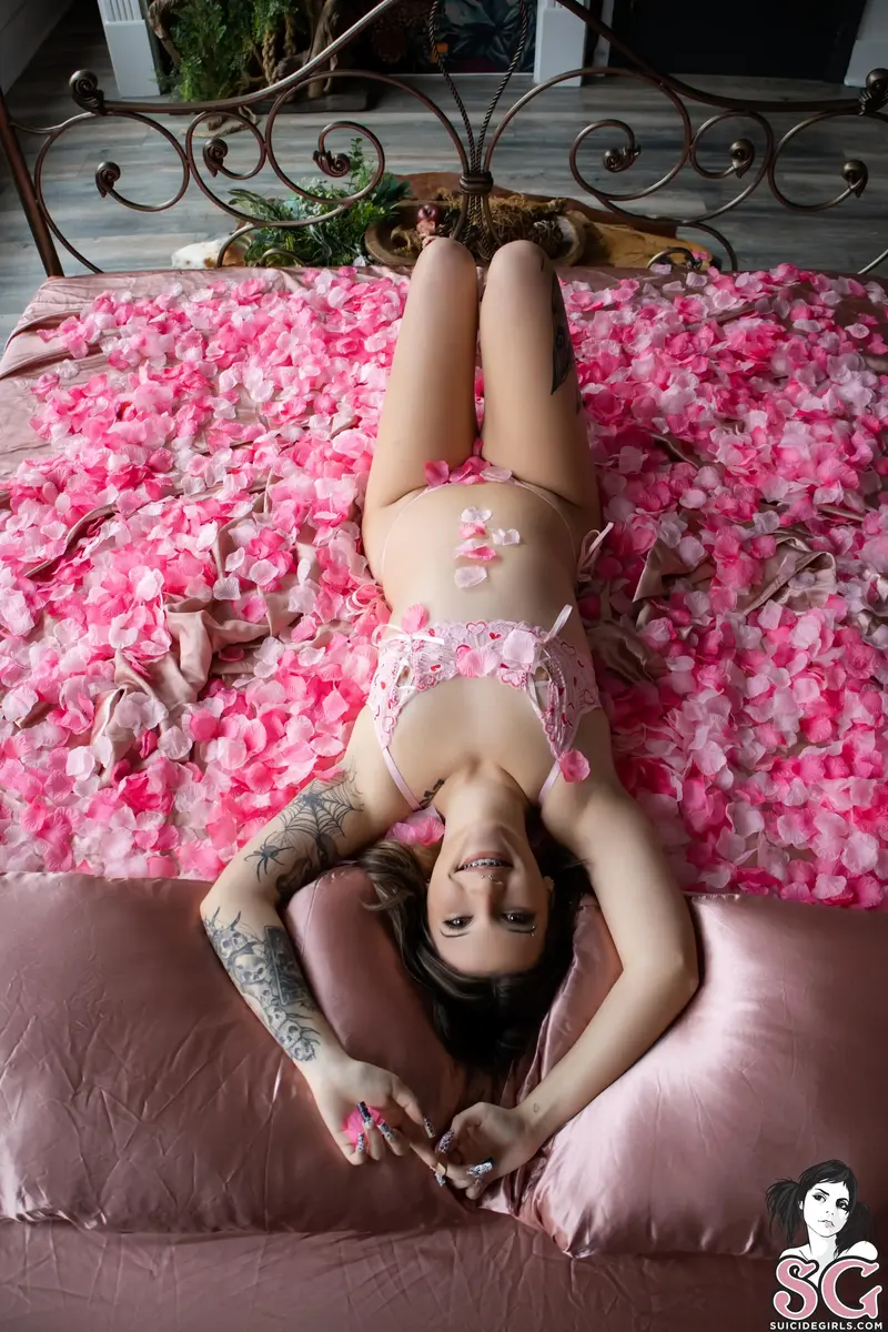 It’s all soft sheets, pink rose petals, and that slow, teasing warmth that builds when you’re stretched out on the bed feeling a little too cute for your own good. Everything feels relaxed, intimate, and just a touch dangerous, like the kind of moment where one glance turns into a smile, then a kiss, then a whole lot of trouble. It’s sweet, it’s tempting, and it has that Valentine’s energy that lingers on your skin long after the petals fall.rayvenblood